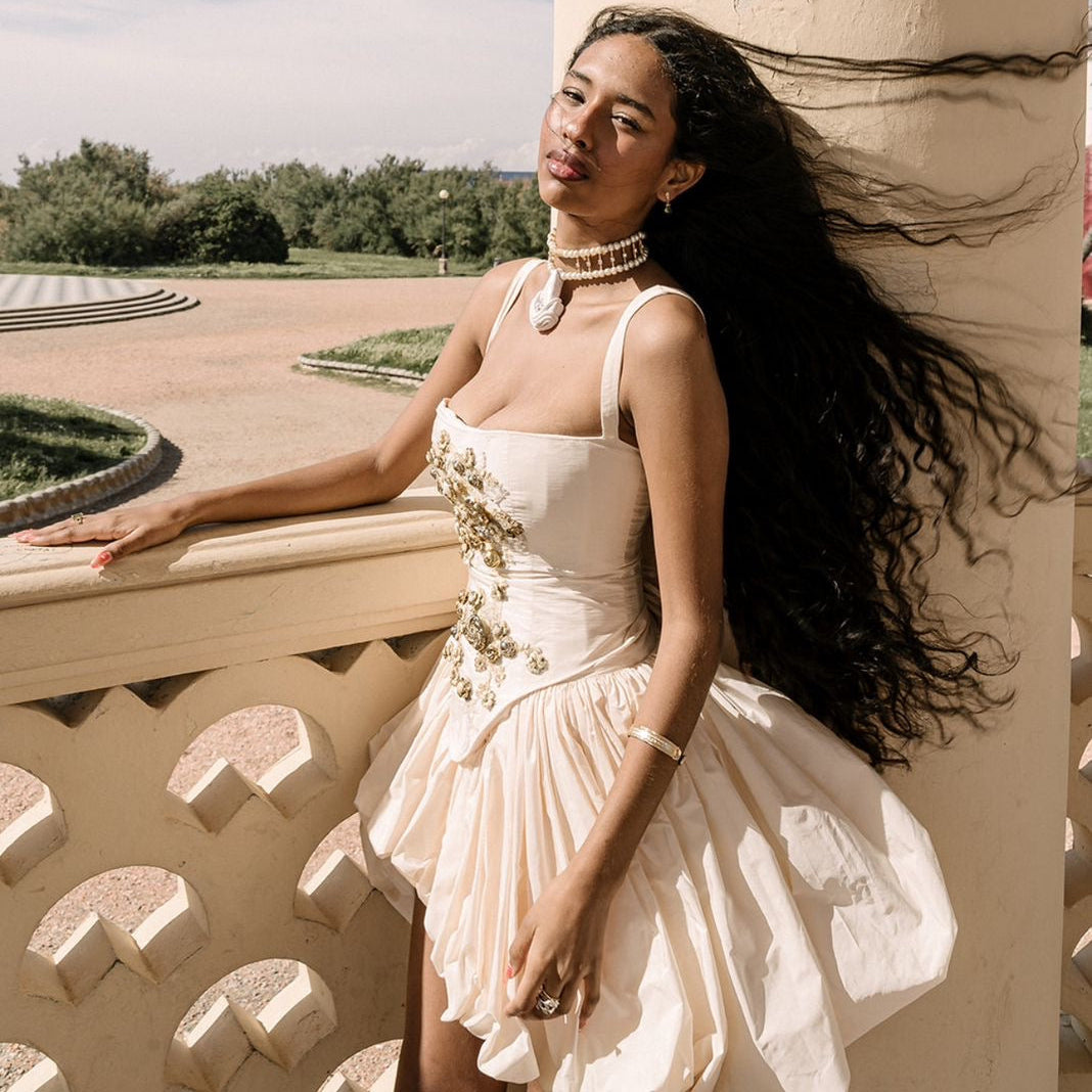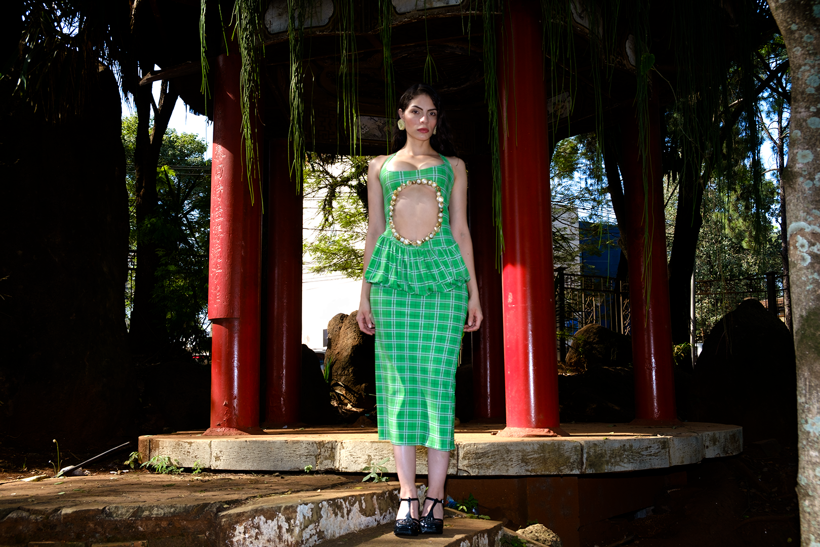 Esta colección fue hecha de tejidos deadstock, botones y cristales vintage.